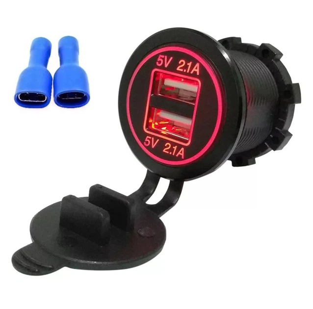 Автомобільна зарядка врізна, Гніздо прикурювача. врізне 2 USB на 2,1А з індикатором 12/24 В червоний