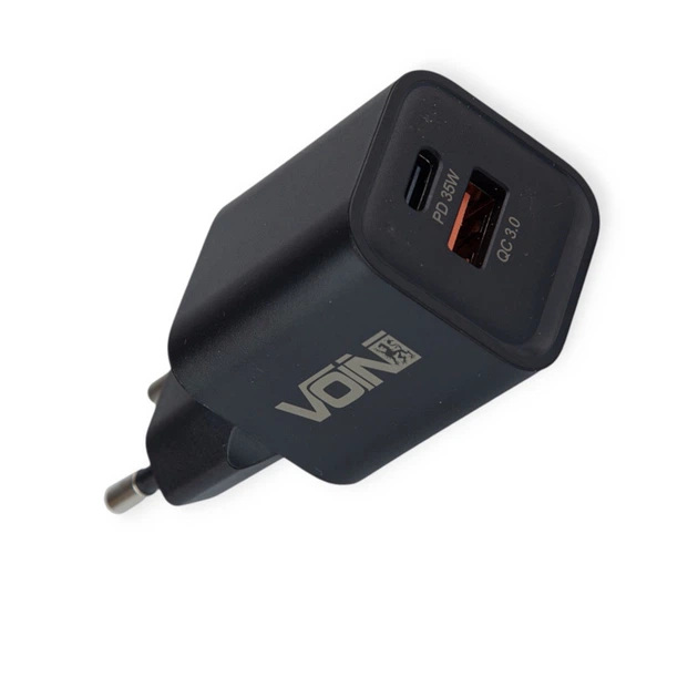 Зарядка від мережі 220В USB , Type C 3.0A, QC, PD, PPS 18W, 35W, чорна VOIN