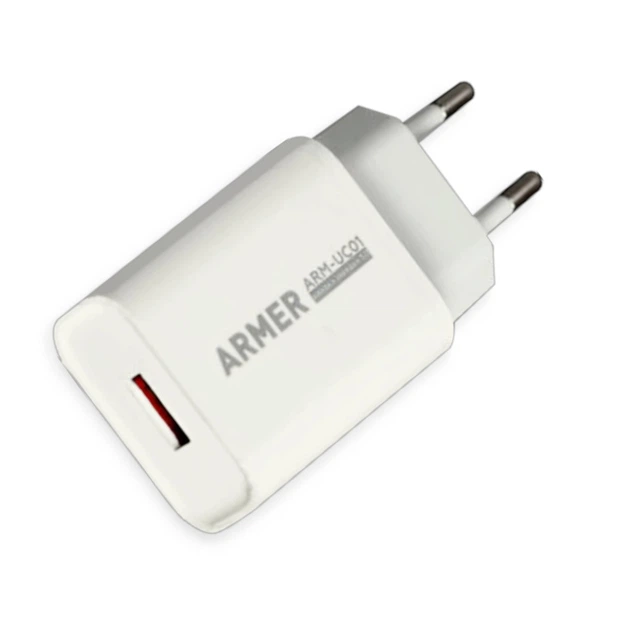 Зарядка від мережі 220В на USB 3.0A, QC, біла ARMER