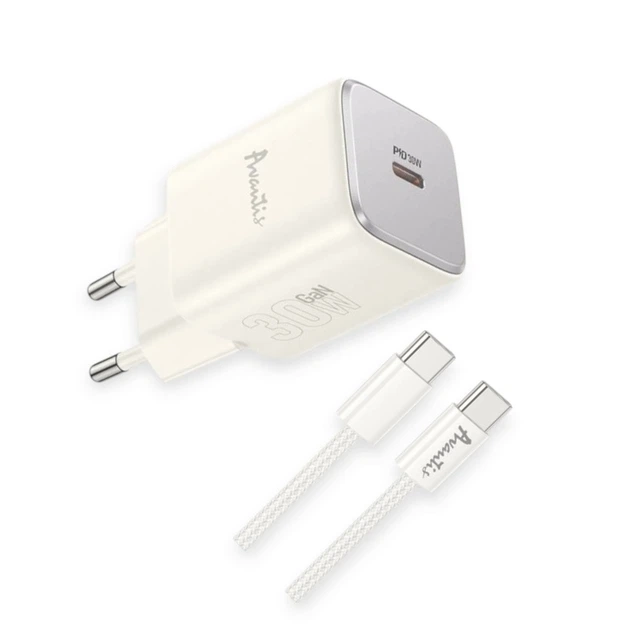 Зарядка від мережі 220В на Type C 3.0A, PD 30W + кабель Type-C - Type-C, біла