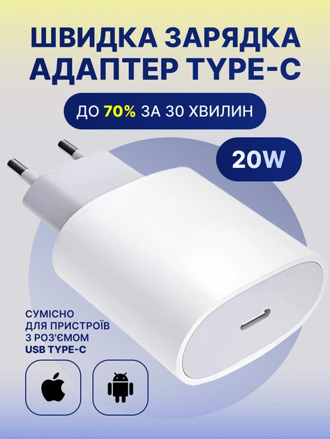 Швидка зарядка 20 ват для айфона андроіда айпада мережний зарядний пристрій адаптер тайп сі Foxconn білий на айфон айпад сам