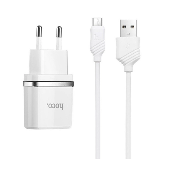 Зарядний пристрій з кабелем usb 1м 2.4а білий HOCO, 6957531047759