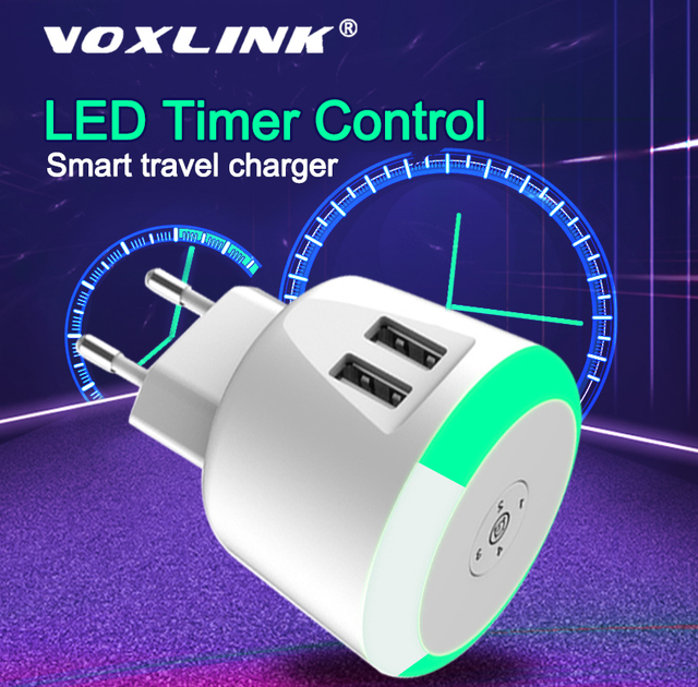Мережевий зарядний пристрій з LED таймером 2 USB порту зарядний блок для телефону Voxlink