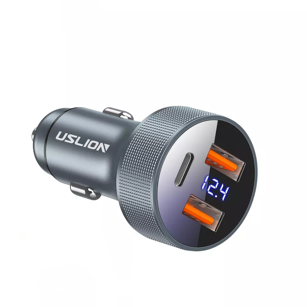 Автомобільний зарядний пристрій зі швидкою зарядкою адаптер 80 Вт PD + 2 USB USLION US0178 Black