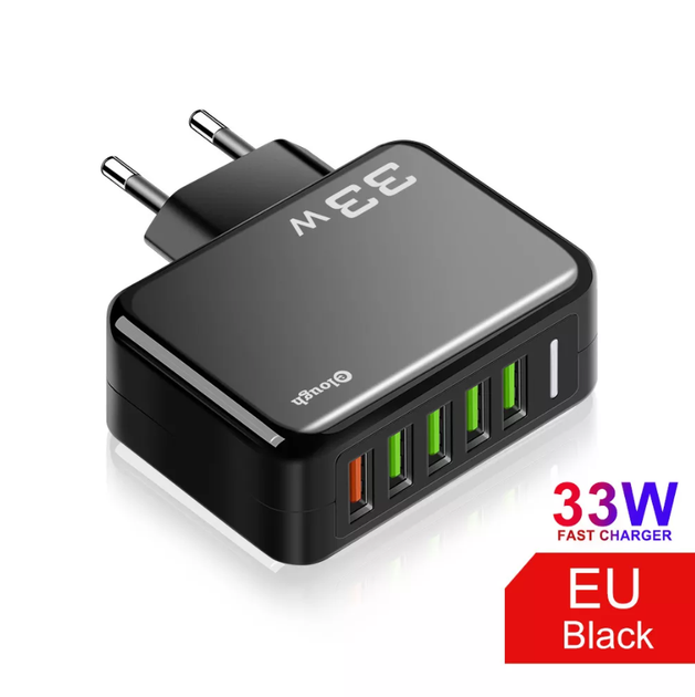 Мережевий зарядний пристрій для швидкого заряджання 33 W 5 port USB QC 3.0 XD78 зарядний блок заряджання для телефона