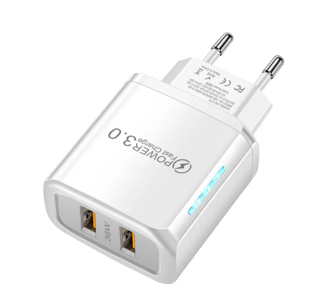 Мережевий зарядний пристрій для швидкого заряджання 2 port USB QC3.0 зарядний блок для телефону смартфона