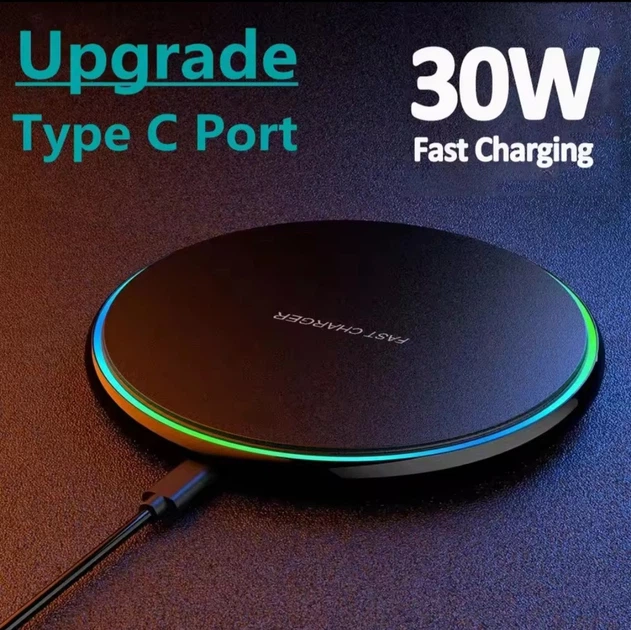 Бездротовий зарядний пристрій для телефонів, планшетів, навушників, та інших гаджетів, 30 W, Type-C