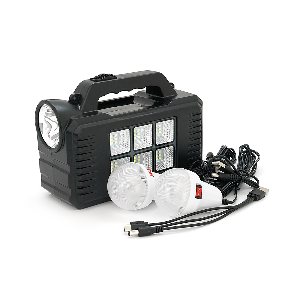 Переносний ліхтар GD-C7+ Solar, 1+1 режим, вбудований акум, 3 лампочки 3W, USB вихід, Black, Box
