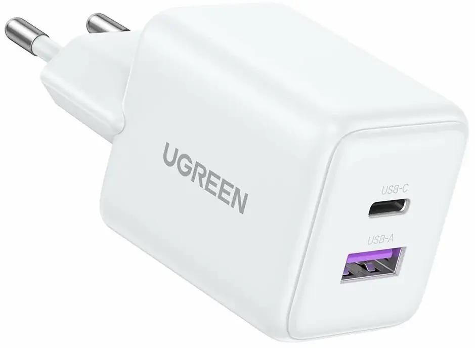 Зарядний пристрій Ugreen USB + USB-C GaN 30W X516 white (65015) 65015
