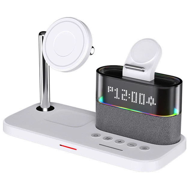 Бездротовий зарядний пристрій + годинник C09 4in1 White
