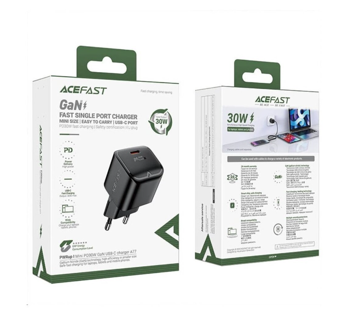Мережевий зарядний пристрій ACEFAST A77 mini PD30W GaN USB-C charger Black new