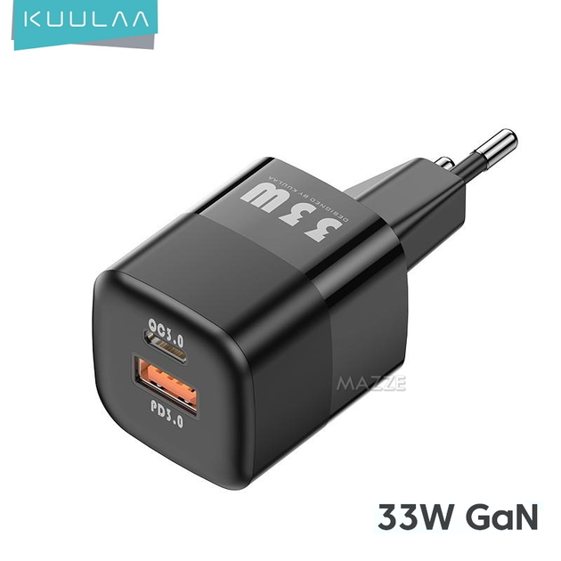 Зарядний пристрій GaN 33W 2xUSB PD + QC 3.0 швидка зарядка для телефону смартфона KUULAA (RY-U33) Black