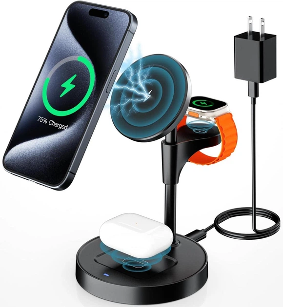 Бездротовий зарядний пристрій 3 в 1 потужністю 15 Вт док-станція для декількох пристроїв