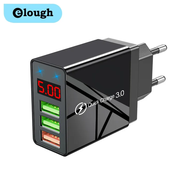 Мережевий зарядний пристрій 3 port USB/LED зарядний блок зарядний блочок для телефону смартфона Elоugh JH22B