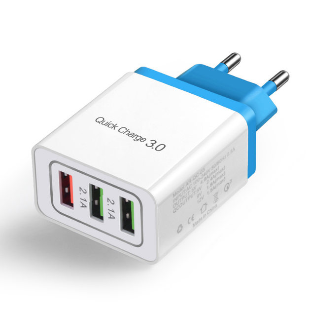 Мережевий зарядний пристрій 3 USB порту QC3.0, швидка зарядка для телефону, зарядний блок 8K-4