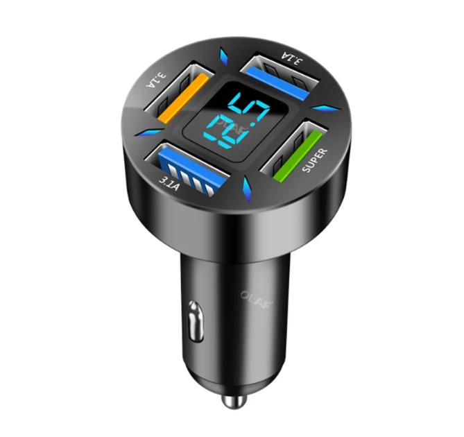 Автомобільне зарядне в прикурювач з вольтметром та швидкою зарядкою на 4 USB
