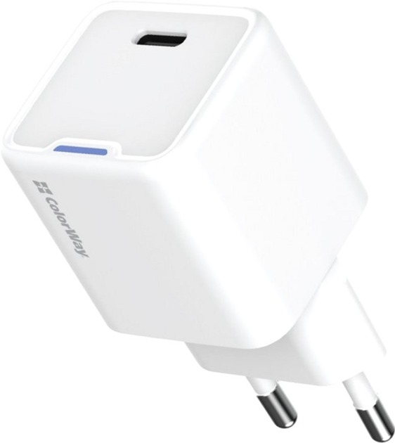 Мережевий зарядний пристрій ColorWay GaN Mini 30 W PD Port PPS USB (Type-C PD + USB QC4.0) White Store