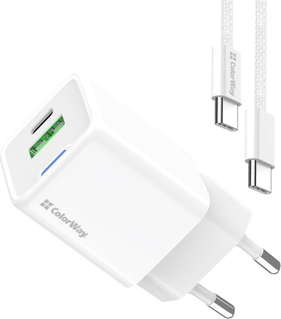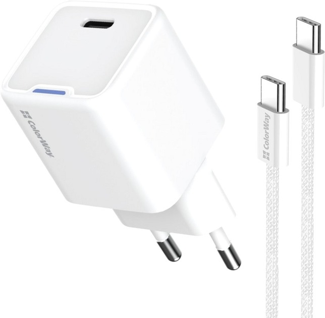 Пристрій зарядний мережевий Colorway GaN Mini 30W PD Port PPS USB-C біле + cable Type-C