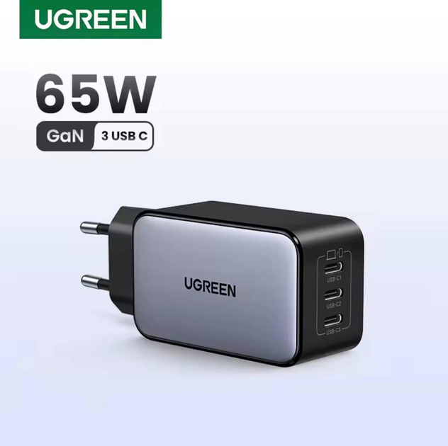 Зарядний пристрій 65W Ugreen X556 Nexode 3-Port Type C Charger, GaNInfinity Technology Compatible, MacBook Pro/Air, iPhone 1