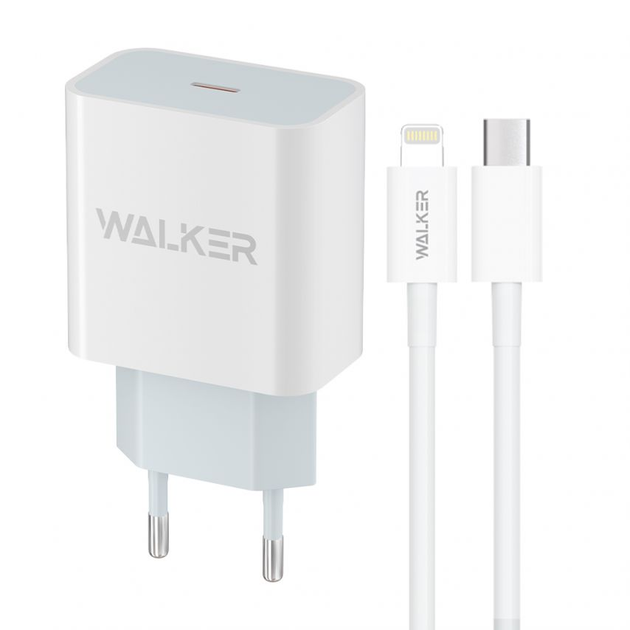 Мережевий зарядний пристрій (адаптер) 2в1 WALKER WH-39 PD 3A 20W білий + Data Cable Type-C to Lightning 20W білий