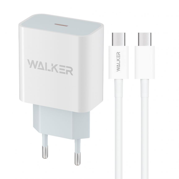 Мережевий зарядний пристрій (адаптер) 2в1 WALKER WH-39 PD / 3A / 20W + Data Cable Type-C to Type-C 30W white
