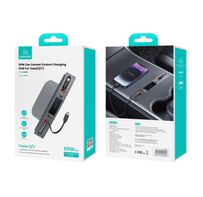 Автомобільний зарядний центр для Tesla 3/Y USAMS US-SJ649 |60W| Сірий