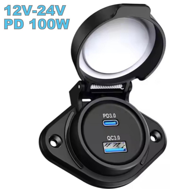 Накладна USB панель IP67 на 100W QC3.0 PD Type-C юсб розетка зарядка від акумулятора 12-24V