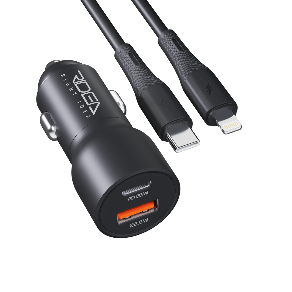 Автозарядний пристрій Ridea RCC-47115 QPow Pro 1USB/1USB-C PD/QC 47.5W+Type-C to Lightning Колір Чорний 6902020132225