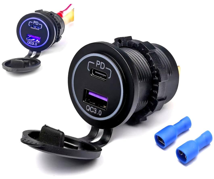 Врізна USB зарядка QC 3.0+PD Type-C 20W Вологозахист Ip67