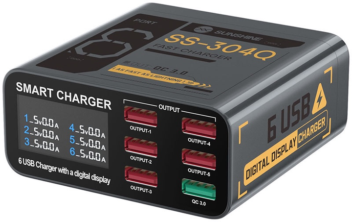 Швидкий зарядний пристрій Sunshine SS-304D 3.5A / 6xUSB / 30W