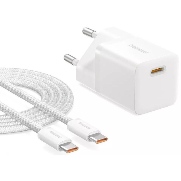 МЗП Baseus GaN5 Mini Fast Charger Type-C 25W + cable Type-C to Type-C 100W 1m White