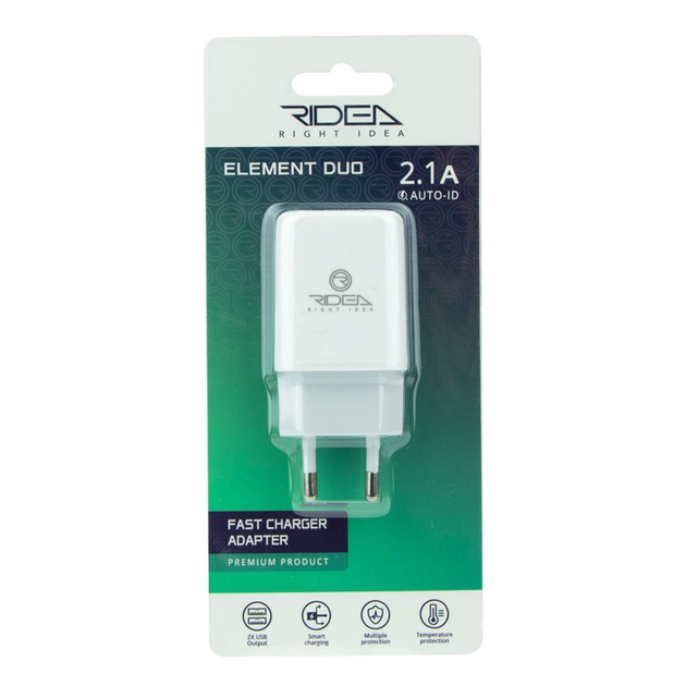 Мережевий зарядний пристрій Ridea RW-21011 Element Duo 2USB 2.1 A без кабелю, White