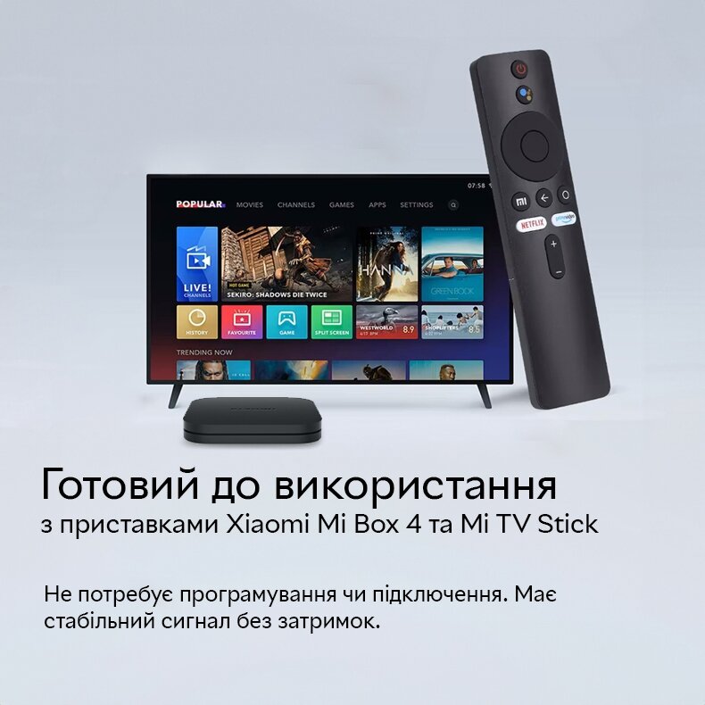 Пульт приставки Xiaomi Mi Box/Mi TV Stick з голосовим керуванням Bluetooth Voice Remote - це універсальний пульт, що забезпечує зручне керування приставками Xiaomi. Оснащений функцією голосового управління, що робить процес використання ще більш простим та інтуїтивним. Цей пульт несумісний із телевізорами без приставок. Сумісні моделі приставок Xiaomi з пультом XMRM-00A: - Xiaomi Mi Box S (MDZ-16-AB) - Xiaomi Mi TV
