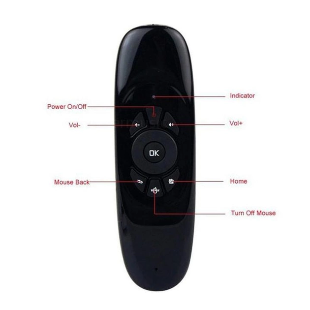 Air Mouse C120 – многофункциональный пульт, клавиатура, мышь. Очень легкая и удобная, прекрасно подойдет для управления ТВ приставкой на Android, планшетом или компьютером на базе операционных систем Windows, Mac OS. Пульт имеет прорезиненные небольшие клавиши, очень приятные для прикосновения, стильный внешний дизайн, компактный размер и вес. Управление в Air Mouse C120 построено на основе датчика