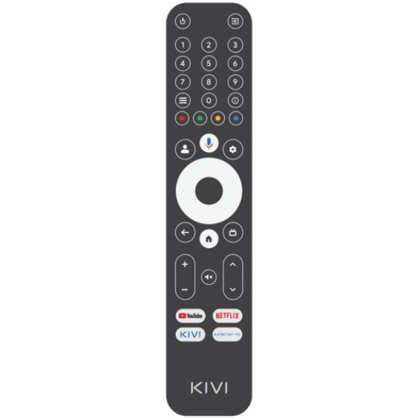 | KIVI RC-45 (Google TV) Bluetooth Black RC-45(GoogleTV)BluetoothBlack Вид/Пульт|Колір виробника/Чорний|Бренд/KIVI|Гарантійний термін/1 рік|Особливості/Мікрофон|Країна виробництва/Китай|Сумісність/KIVI 24H710QB, 32H710QB, 32F720QB, 40F710QB, 43U710QB, 43U720QB, 50U710QB, 50U720QB, 55U720QB, 55U710QB, 65U710QB | |