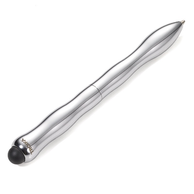 Waves- комбінація кулькової ручки та стілусу для iPad, iPhone та інших планшетних ПК з сенсорним екраном. Ручка невелика за формою і завдяки хвилеподібній формі чудово лягає в руці. Troika & Waves - Стілус + кулькова ручка Waves. Функціональність: • стілус для iPad, iPhone та інших планшетних ПК із сенсорним екраном Характеристики: • Механізм висування стержня: поворотний • Розміри (ВхШхД), мм: 99 х 11 х 11 мм • Вес, г: 14 г • Колір корпусу: сріблястий • Колір чорнила: чорний •Матеріал : алюміній Німецький бренд Troika- це практичність, якість матеріалів та стиль.