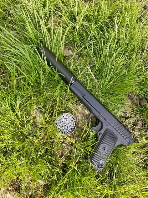 Дитячий страйкбольний Пістолет з глушником Тульский Токарев ТТ Galaxy G33A метал, пластик стріляє кульками 6 мм Чорний