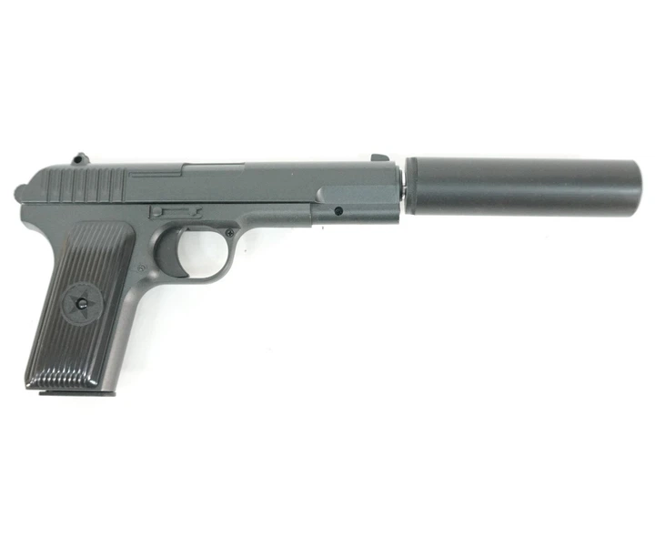 Пистолет c глушителем металлический черный стреляет 6 мм пластиковыми пульками