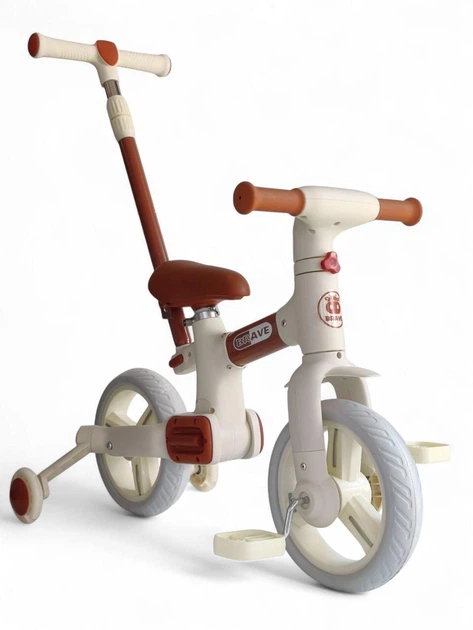 Велосипед беговел дитячий 2в1 з батьківською ручкою Brave 616 Light Beige-Brown