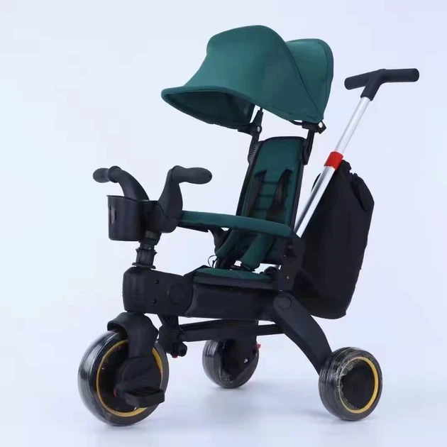 Складаний велосипед з батьківською ручкою беговел штовхач коляскаYOYA 5 в 1 Бірюзовий