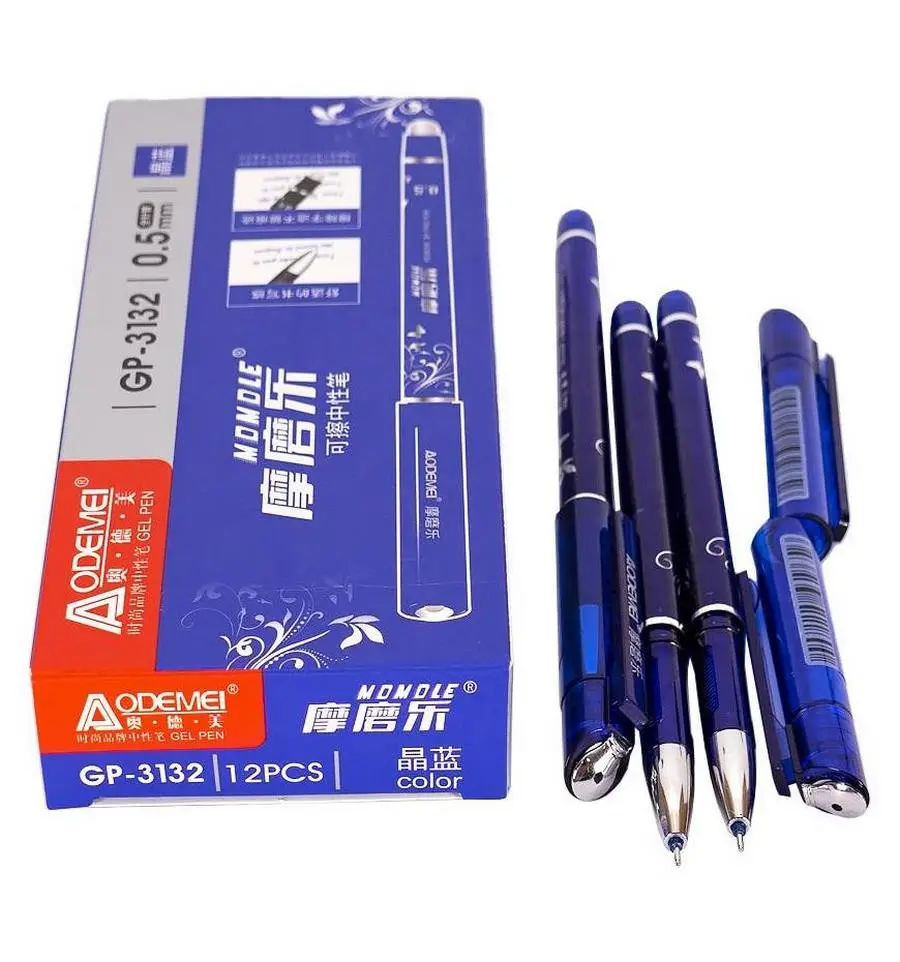 Ручка пиши-стирай автоматична гелева Aodemei, 0.5 мм, синя, 12 шт., 33263