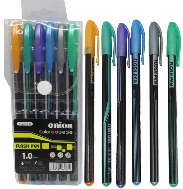 Набір гелевих ручок, 6 шт., з металевим ефектом, PVC