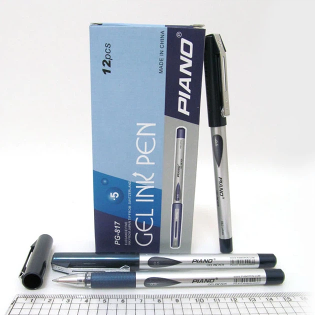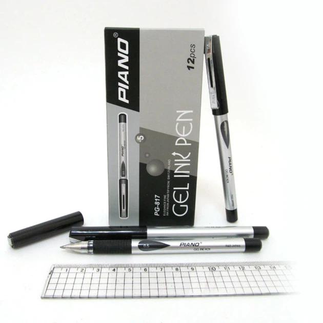 Набір гелевих ручок Piano, 0.5 мм, чорна, грип, 12 шт., 817-PGBK