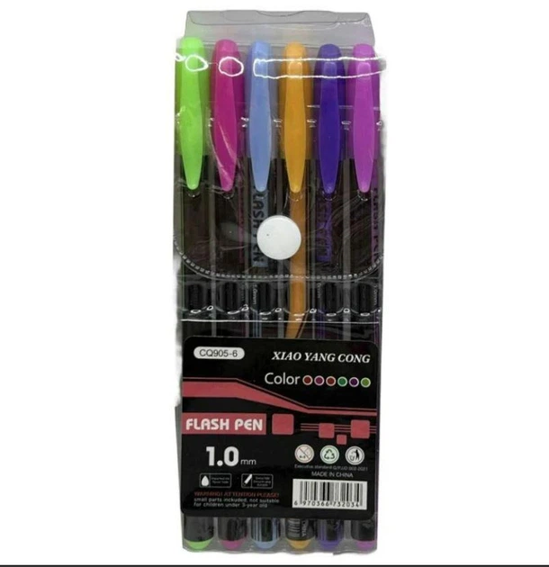 Набір гелевих ручок /905-6-3/, 6 кольорів, неон