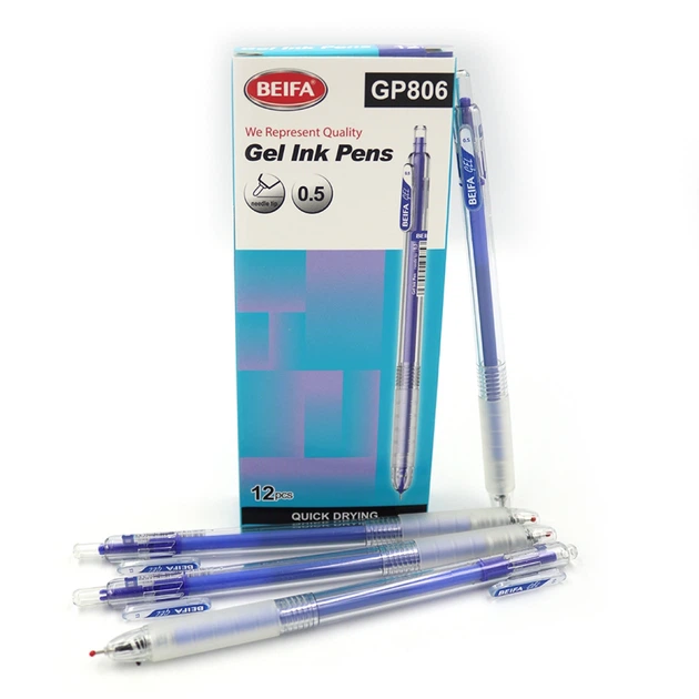 Набір гелевих ручок автоматична Beifa, 0.5 мм, швидко висихає, синя, 12 шт.