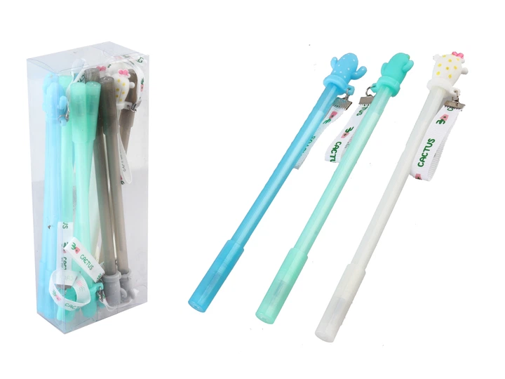 Ручка гелева Кактус із петлею, синя, 12 шт., 13336(587)