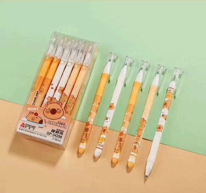 Ручка гелева набір 12 шт Капібара «пише-стирає» колір синій