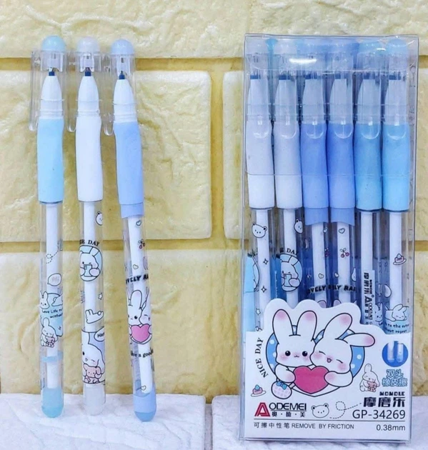 Ручка гелева набір 12 шт Зайчик «пише-стирає» колір синій