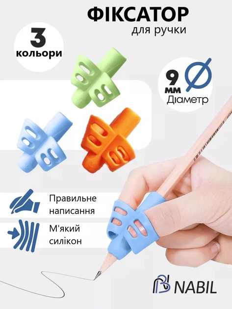 Тренажер тримач для письма насадка на ручку Nabil Набір 3шт різні кольори 9мм
