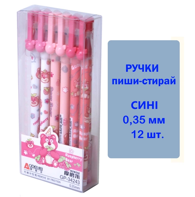 Ручки гелеві "Пиши-стирай" Сині GP-34226 "Lucky bear" (12 ШТ)--SH437